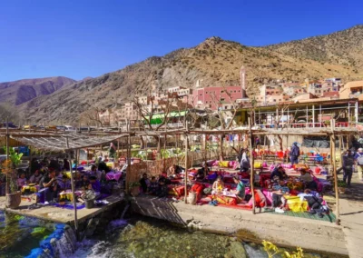 Next, continue toward the lively village of Tnin Ourika, home to a colorful weekly market. Here, visitors can immerse themselves in the rhythms of local life, discovering fresh fruits, vegetables, and handcrafted goods while interacting with the friendly market vendors.