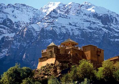 After breakfast, explore Ouarzazate, including its renowned film studios and the Kasbah Taourirt. Continue to the legendary Aït Ben Haddou Kasbah, a UNESCO World Heritage site and iconic film location. Cross the High Atlas Mountains via the scenic Tizi n’Tichka Pass, with stops for panoramic views of Berber villages and valleys. Descend into Marrakech by late afternoon, where the lively souks and Jemaa el-Fna square await exploration. Overnight in a riad in Marrakech.